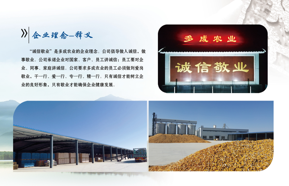 "誠信敬業(yè)“是多成農(nóng)業(yè)的企業(yè)理念。公司倡導(dǎo)做人誠信,做事敬業(yè)。公司承諾企業(yè)對國家、客戶、員工講誠信;員工要對企業(yè)、同事、家庭講誠信。公司要求多成農(nóng)業(yè)的員工必須做到愛崗敬業(yè),干一行、愛一行、專一行、精一行。只有誠信才嫩個樹立企業(yè)的良好形象,只有敬業(yè)才能確保企業(yè)健康發(fā)展 |